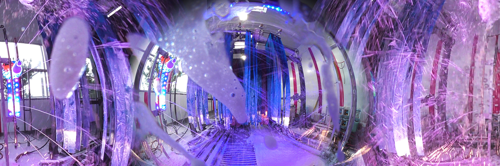 The technical design behind the photography, edit, and sound of JANE THE BAPTIST, focuses on immersion, cycles, and the corresponding disorientation. This effect loosely references the Indian philosophy of Samskara — volitional formations and their perpetuations. JTB reflects upon our human condition, it’s perpetuations, and our current global landscape of automation, and the simultaneous movement toward rebirth. The photography, achieved through the use of three fisheye camera are blended together creating a tunneled wrap sensation. This birth canal passage touches back to 1960’s psychedelia and the counter cultural thrust against the wall of war and politics. The editing divisively employs jump cuts to help disorient the viewer’s sense of chronology from one car wash to the other and in turn, a willingness to allow the washing, cleansing, mechanical frothy brutality to continue to do its work. The result is a one pointed gaze, always moving towards center bashed by obstacles of touch and desire. The music and edit collaborate, moving together in choreographed motion to keep attention broad before release.