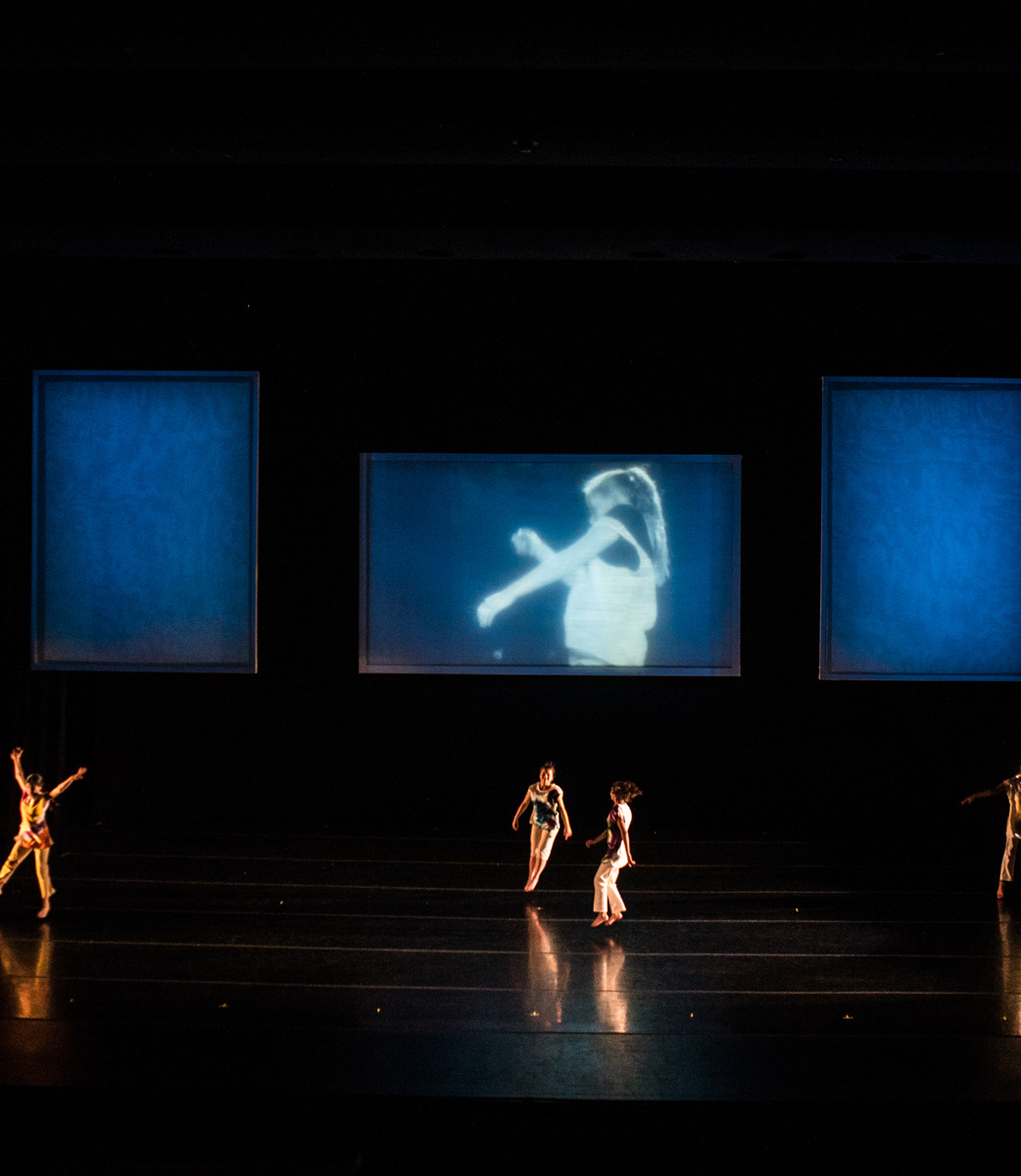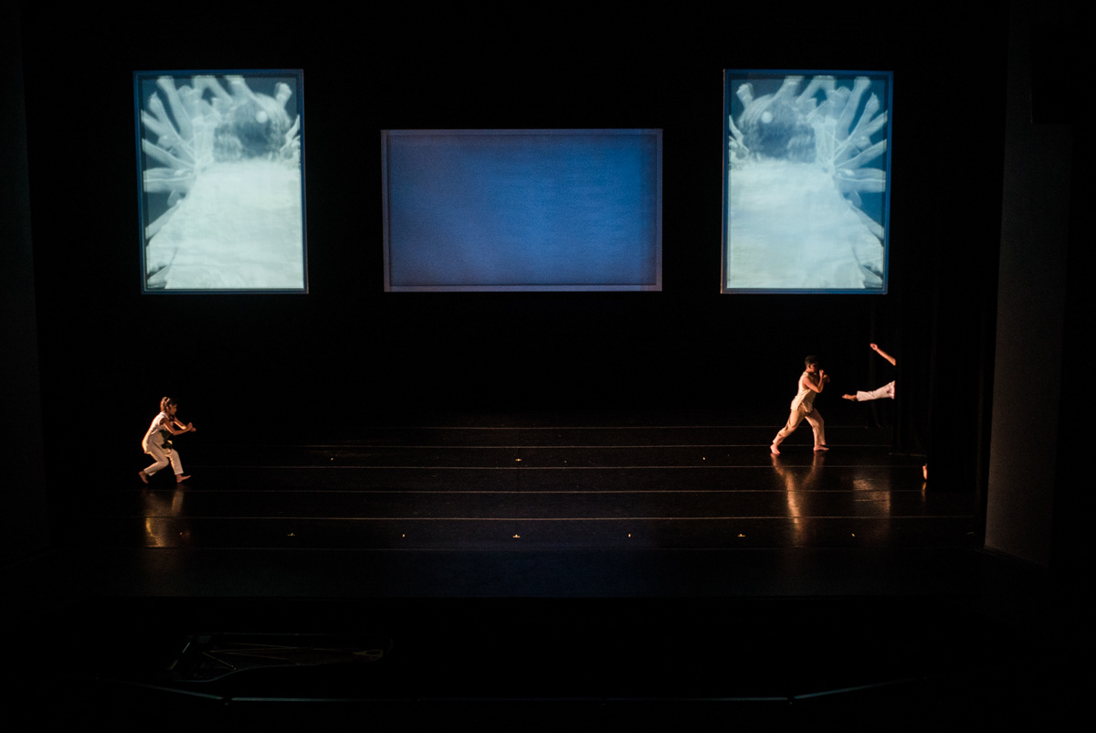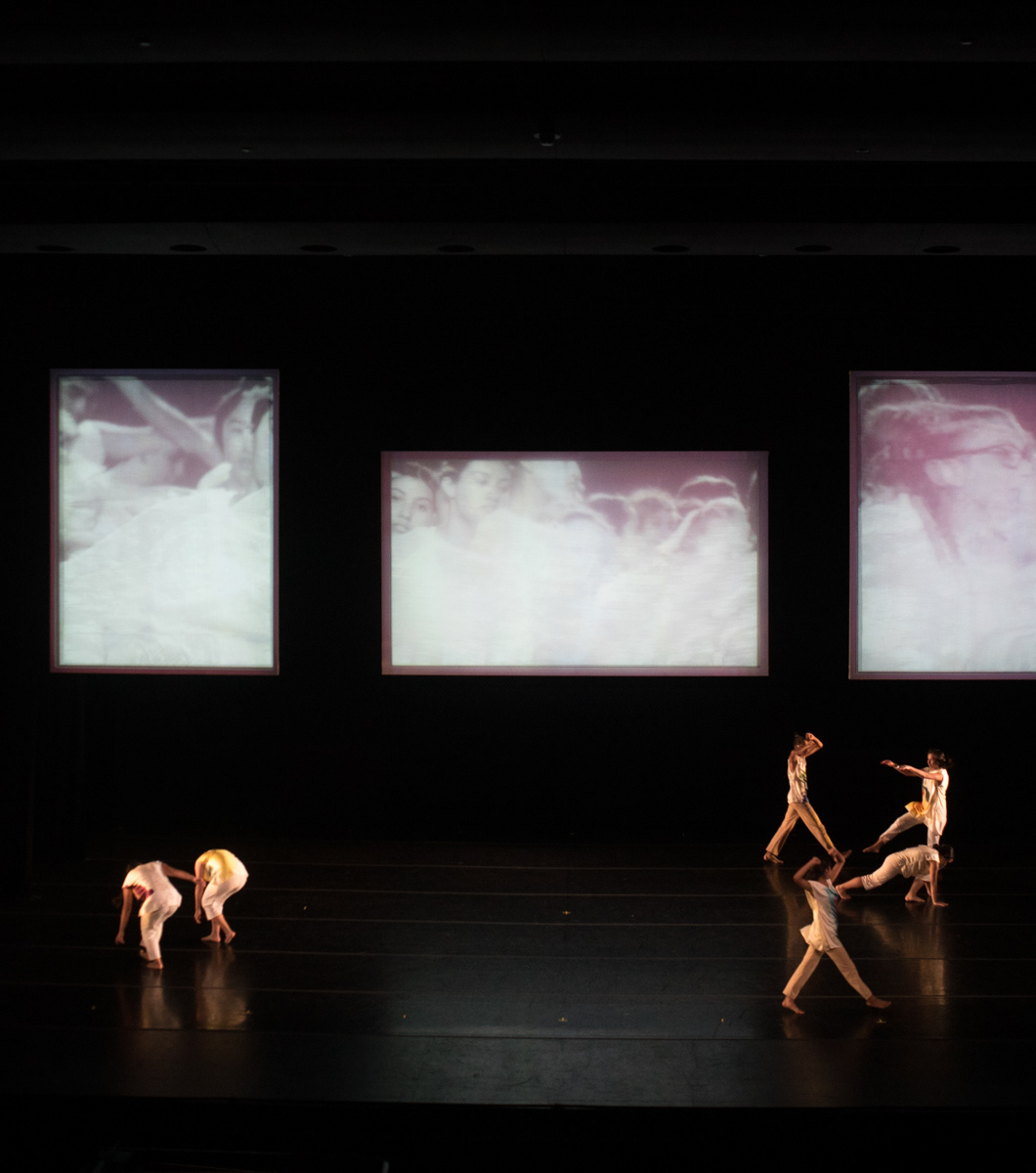 LOOK DOWN AND SEE THE CROWD, LOOK UP AND SEE THE INFINITE SKY, EXCERPT 02:40, ORIGINAL RUNTIME 24:39, THREE CHANNEL VIDEO AND PROJECTION DESIGN, BARCLAY THEATER, UC IRVINE.