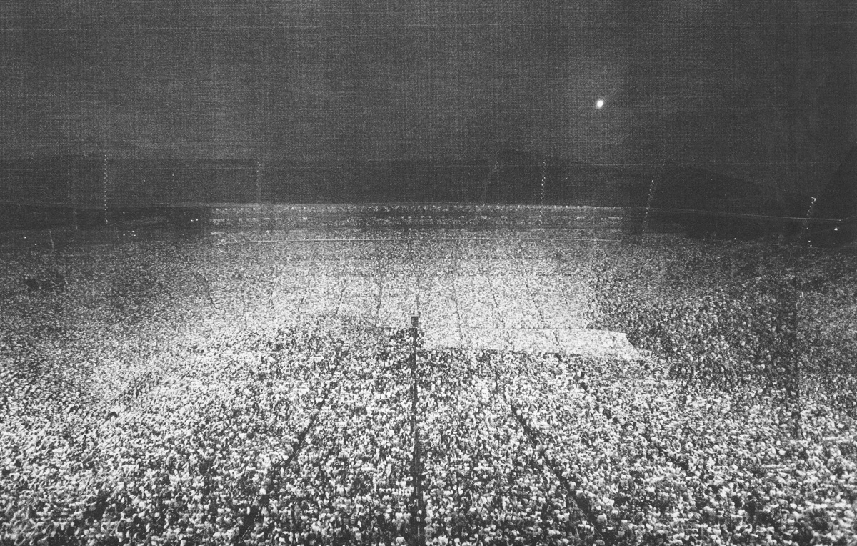 Lumpers and Splitters is a series of large format printed works. The images are taken from the internet. All images are of large crowds or gatherings, so far none religious but typically from sporting events or concerts. They are created using desktop prints and manipulated through collage by hand, tape, knife, and scissor. The objective is to remove the spectacle or event that the crowd has gathered and pasting the crowd themselves back over the spectacle. The collages are scanned in high resolution and then printed as large format pigment prints. When looking at these prints an initial reaction of disbelieve and awe at the scale of the gathering arises but as one sits with the image they can see the cut or tape marks, which leads to the realization that the images have been manipulated. The tell of manipulation points to intension, and the intension points to a new way of seeing a mass gathering and perhaps even group think. The prints stand as an agitator - challenging one’s affective response to groups, gatherings, and celebration. It is perhaps a matter of trust, culture, and identity that promotes reaction of agoraphobia to solidarity.